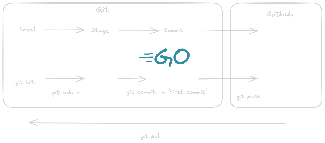 En la imágen anterior se describe el proceso básico para pasar de Local a Stage, de Stage a Commit y de Commit a Github y/o Cloud.