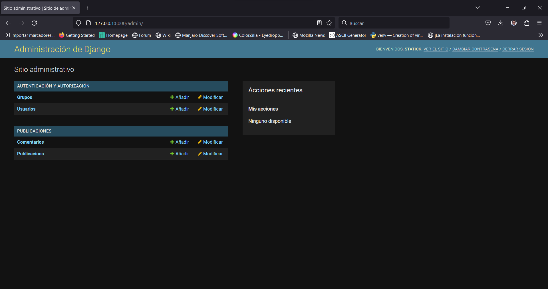 admin.site.register(Publicacion)Con este registro, el modelo “Publicacion” estará disponible en la interfaz de administración de Django.